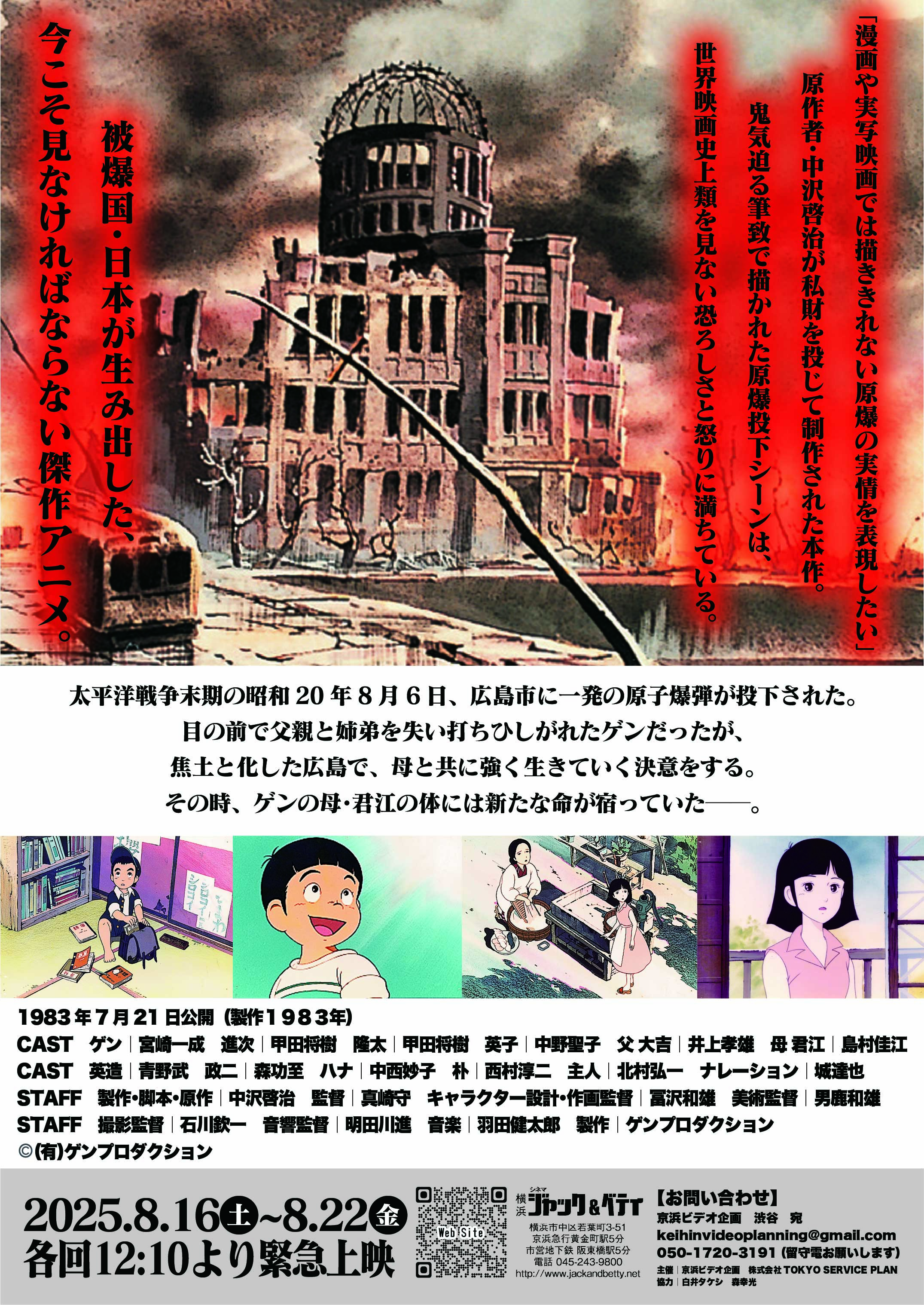STAFF 製作・脚本・原作|中沢啓治 監督|真崎守 キャラクター設計・作画監督|冨沢和雄 美術監督|男鹿和雄 撮影監督|石川欽一 音響監督|明田川進 音楽|羽田健太郎 製作|ゲンプロダクション