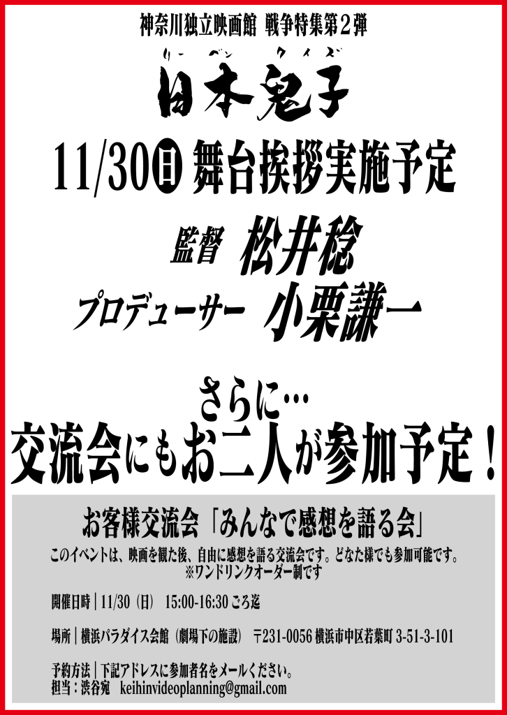 ※11/30は松井稔監督、小栗謙一プロデューサーによる舞台挨拶実施予定(予定なく変更される場合もございます)